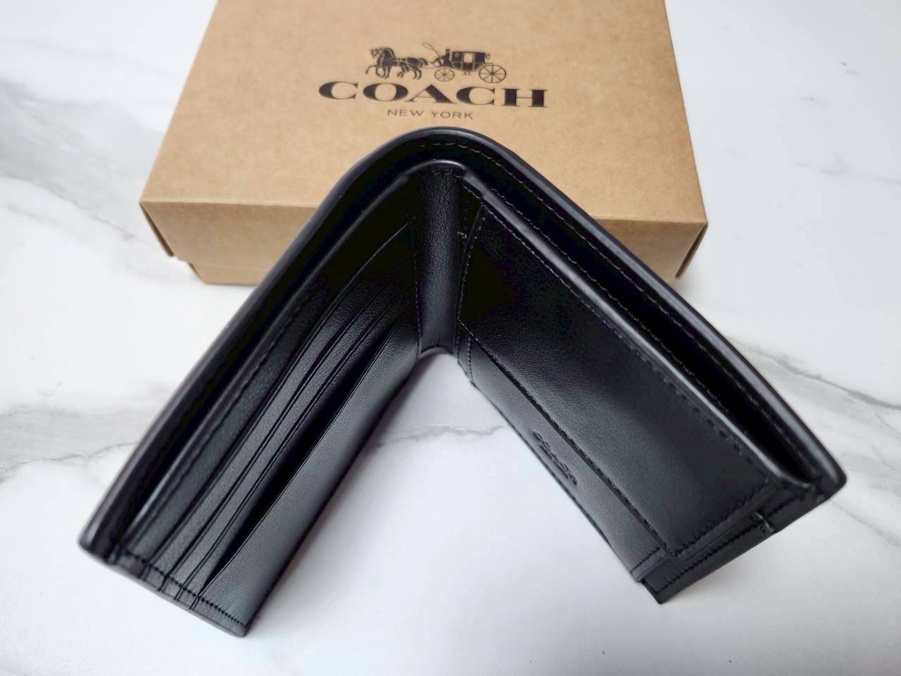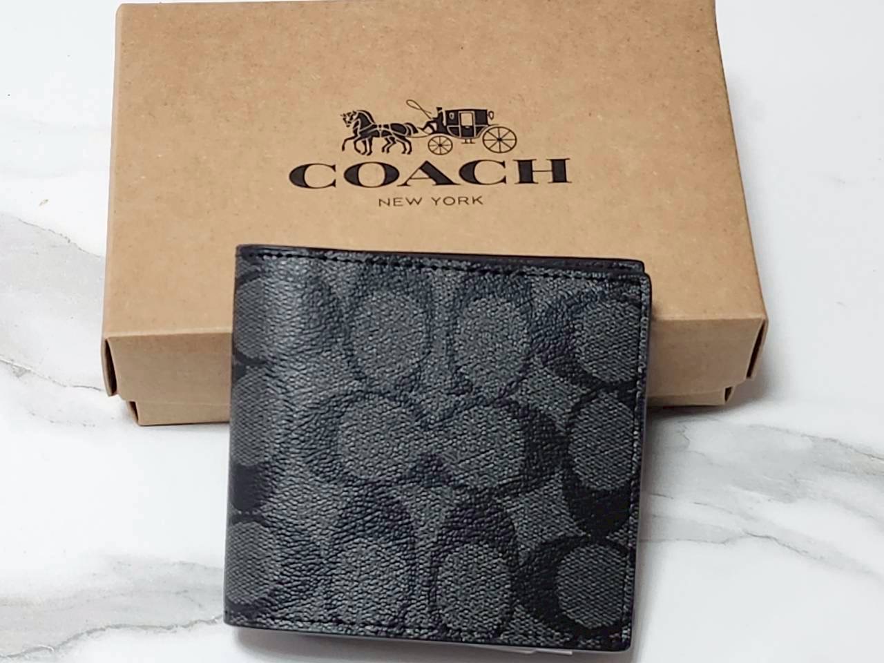 COACH アウトレット F75006 PVCコーティングキャンバス カーフレザー シグネチャー 二つ折り財布 ブラック