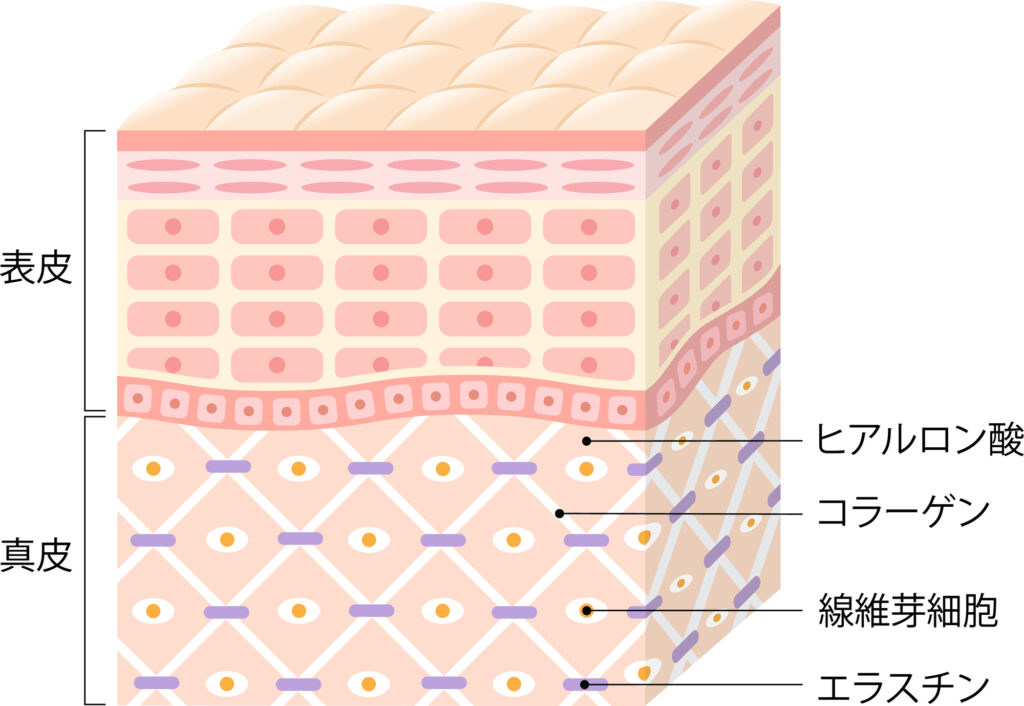 - 役割:網目状に張り巡らされたコラーゲンを束ね、バネのように弾力を与えます。